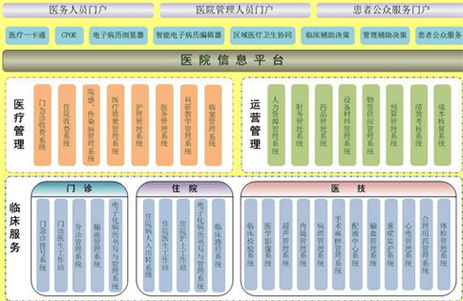 醫(yī)院信息系統(tǒng)基本功能。醫(yī)院信息系統(tǒng)實(shí)現(xiàn)醫(yī)院臨床業(yè)務(wù)、醫(yī)療質(zhì)量和醫(yī)院管理的 數(shù)字化運(yùn)作,主要包括臨床服務(wù)、醫(yī)療管理、運(yùn)營(yíng)管理三部分,如圖所示:醫(yī)